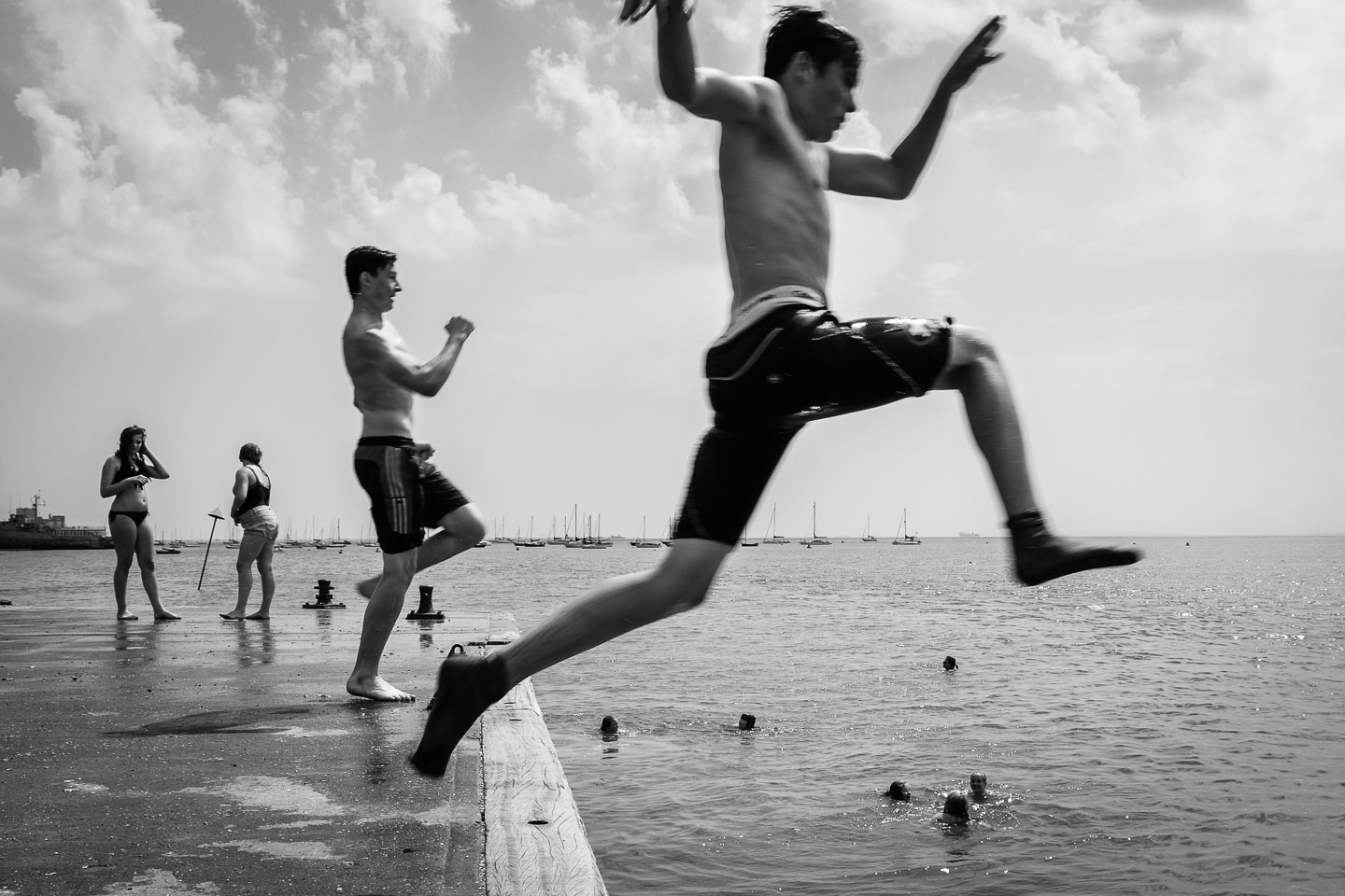 This collection of images explores the sense of abandon in these divers and jumpers; the exhilaration of a journey ‘into the zone’, the dream of flying. If only they could bottle that moment of freedom they experience between leaping off the wharf and smacking the water.