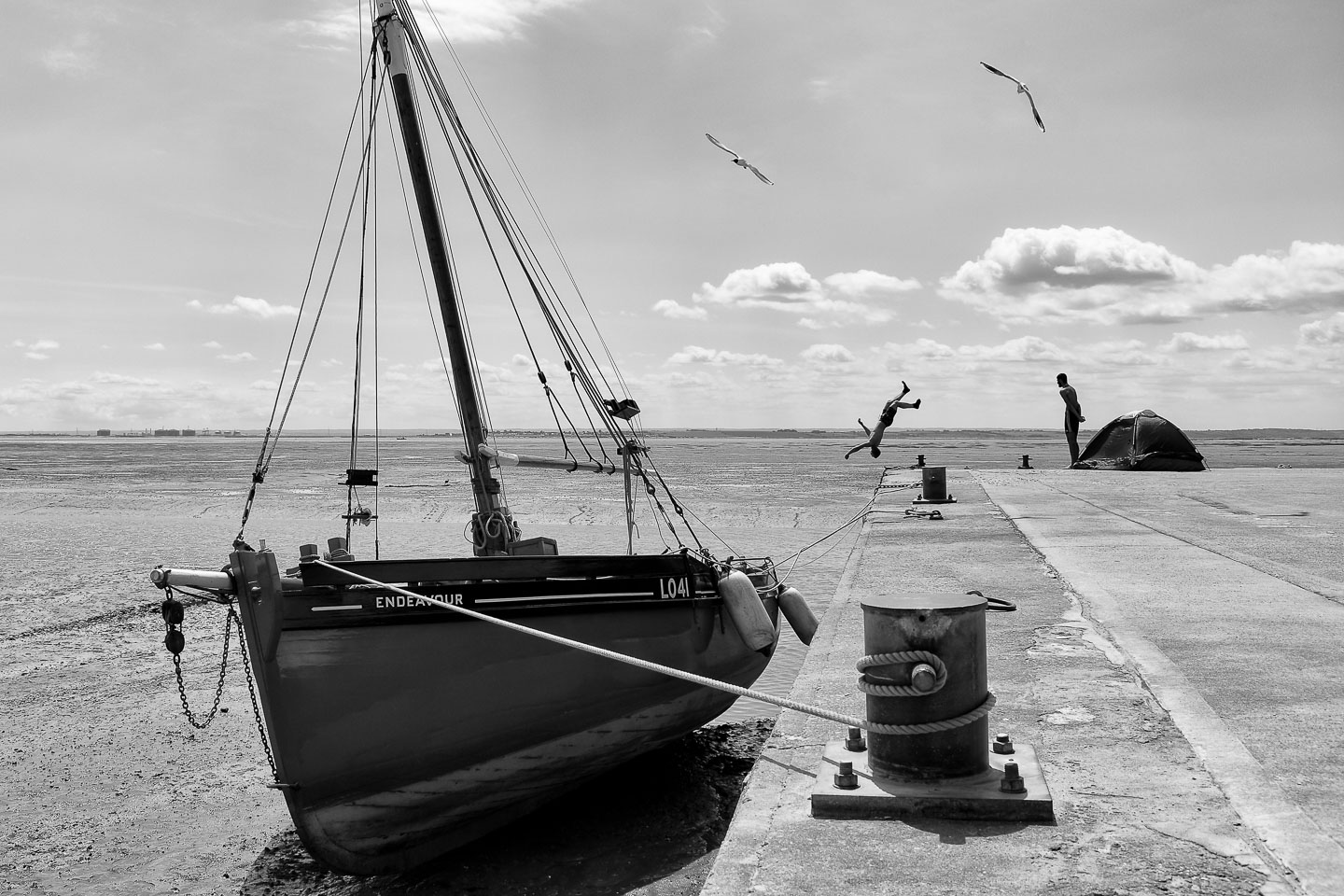 In Leigh’s Old Town on summer weekends, the two wharves at its most easterly point are magnets to visitors. If the tide is up, the longing to leap into the estuary is strong. It isn’t enough for these thrill-seekers to sit and dangle their feet over the edge. They need the rush of hurling themselves off it. The urge to jump is the urge to live, and the greatest endorphin burst of all is in the split second when they are airborne.